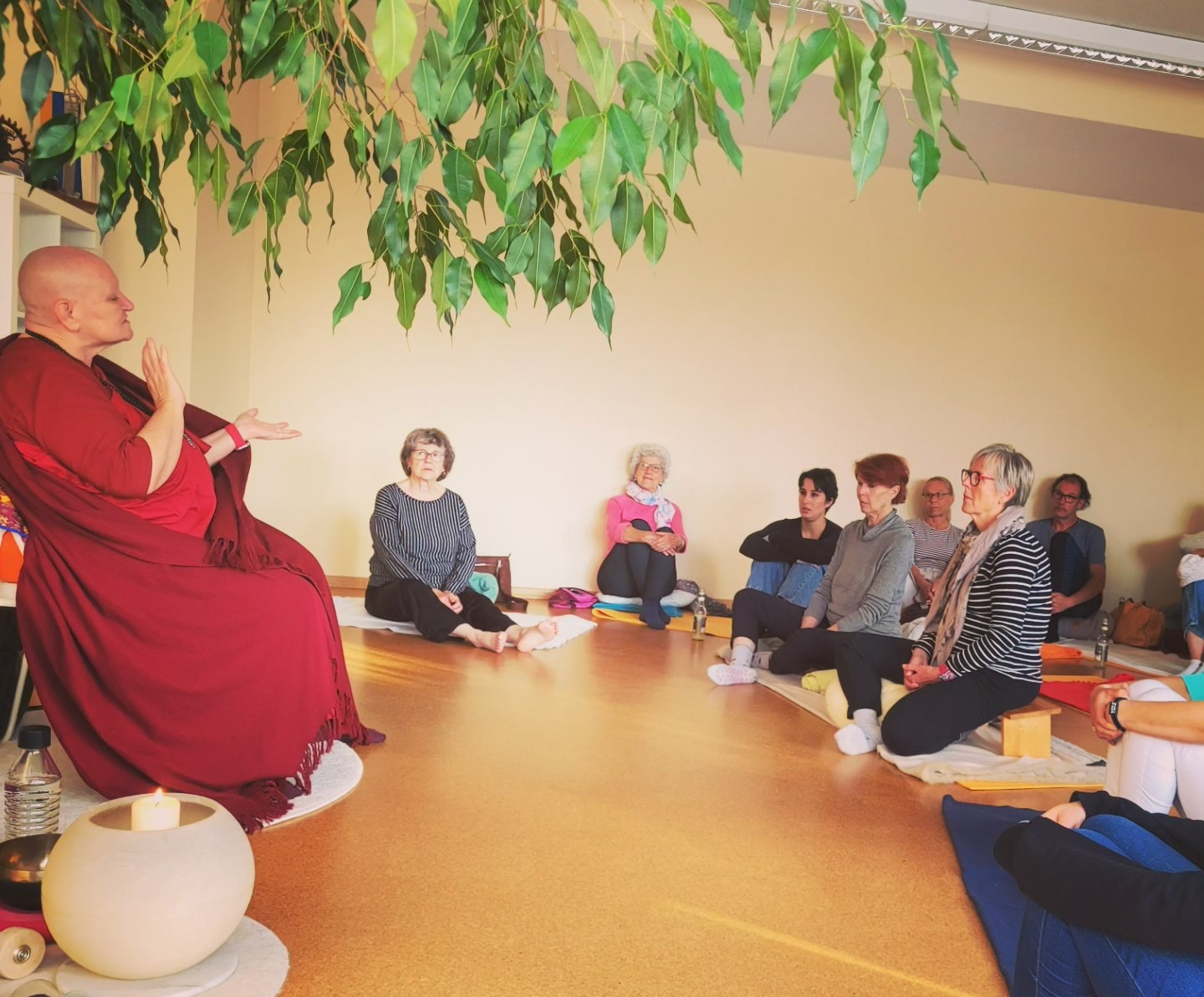 Gemeinsam sprachen wir über die drei Merkmale des Daseins – Vergänglichkeit, Leidhaftigkeit und Nicht-Selbst – und darüber, wie Achtsamkeit an die Stelle von Kontrolle treten kann. Wir erforschten, wie fein der Unterschied zwischen Loslassen und Verdrängen ist, und wie Gedanken wie Wellen auf einem See auftauchen, während der See klar wird, wenn sich der Wind legt. Brigitte zeigte, wie Metta, die Praxis liebevoller Güte, wie eine heilende Medizin gegen Ärger wirkt, und erklärte, weshalb Gleichmut nichts mit Gleichgültigkeit zu tun hat. Immer wieder betonte sie, wie wichtig es ist, sich selbst eine verlässliche Zuflucht zu sein.